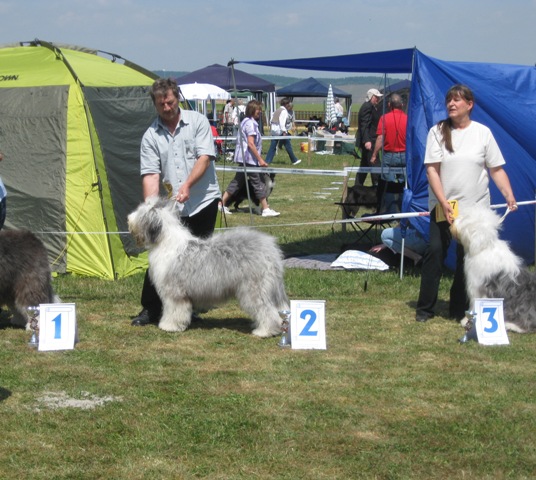 Richterbericht: 10 Monate alte Hündin, sehr schöne Gesamterscheinung, schöner Kopf, vollst. Lidpigment, vollz. Scherengebiß, schöne obere Linie, korrekt überbaut, Brustkorb u. Winkelungen korrekt, flottes Gangwerk, Haarkleid d. Alter entsprechend, ruhiges liebes Wesen Jugendklasse: V2 res.CAC-J |
